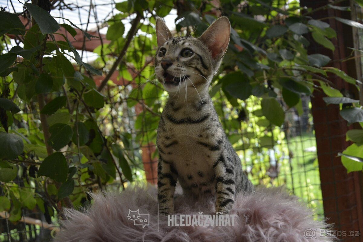 Je kočičí plemeno vytvořené křížením divokého servala s domácí kočkou, často s bengálským, siámským nebo jiným skvrnitým plemenem. Výsledkem je velká, elegantní kočka s výrazným skvrnitým zbarvením a impozantní postavou. Savannah je aktivní, hravá a může být náročná v péči kvůli svému vysokému energetickému stupni a inteligenci. Ačkoliv je domestikována, může mít některé divoké rysy, což vyžaduje zkušeného majitele.