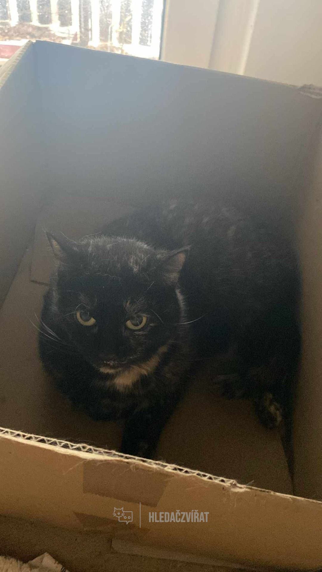 Plachá želvovinová kočička, která prožila těžké trauma a hledá klidný domov