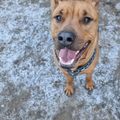 Věk: 2 roky. Dle informace od rodiny by mělo jít o mix labradora a bull plemene.