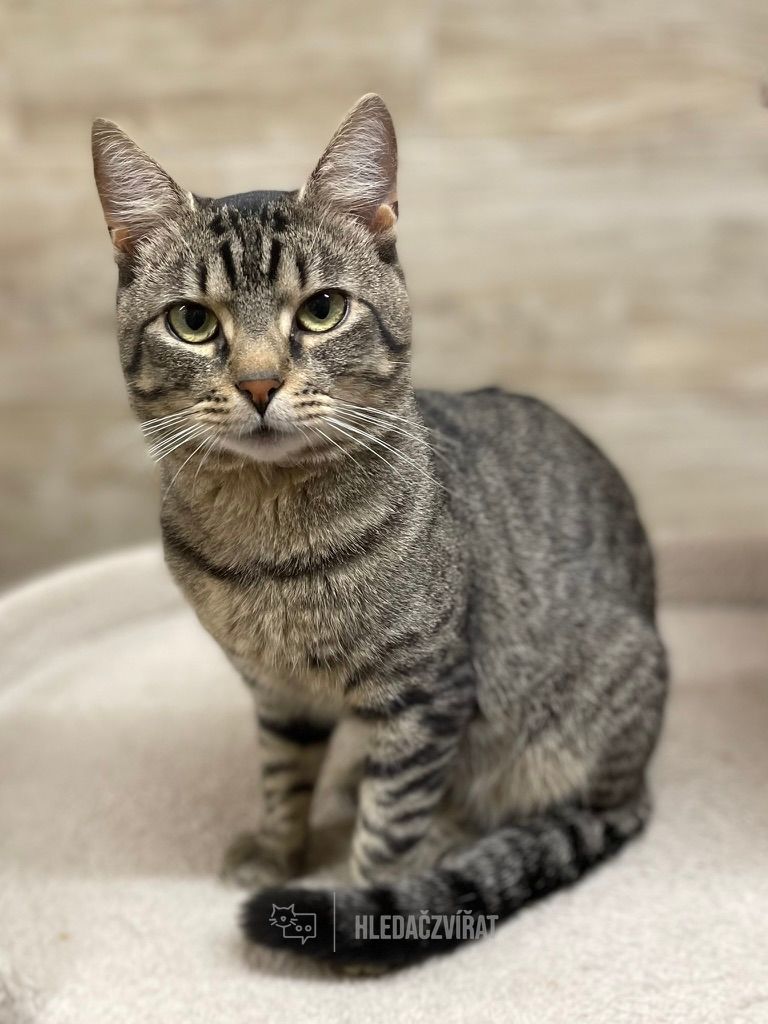 Tento nádherný tygřík byl odchycený jako divoké toulavé kotě. Je ale moc šikovný, socializace mu jde na výbornou a stává se z něj umazlený a uvrněný kluk. Rád si hraje, ale i jen tak pozoruje. S trochou trpělivosti z něj bude bombastický kocour. Bude potřebovat klidnější domov a spoustu mazlení a zase mazlení. Určitě ocení jinou kočičku. Naučený na kočičí wc.