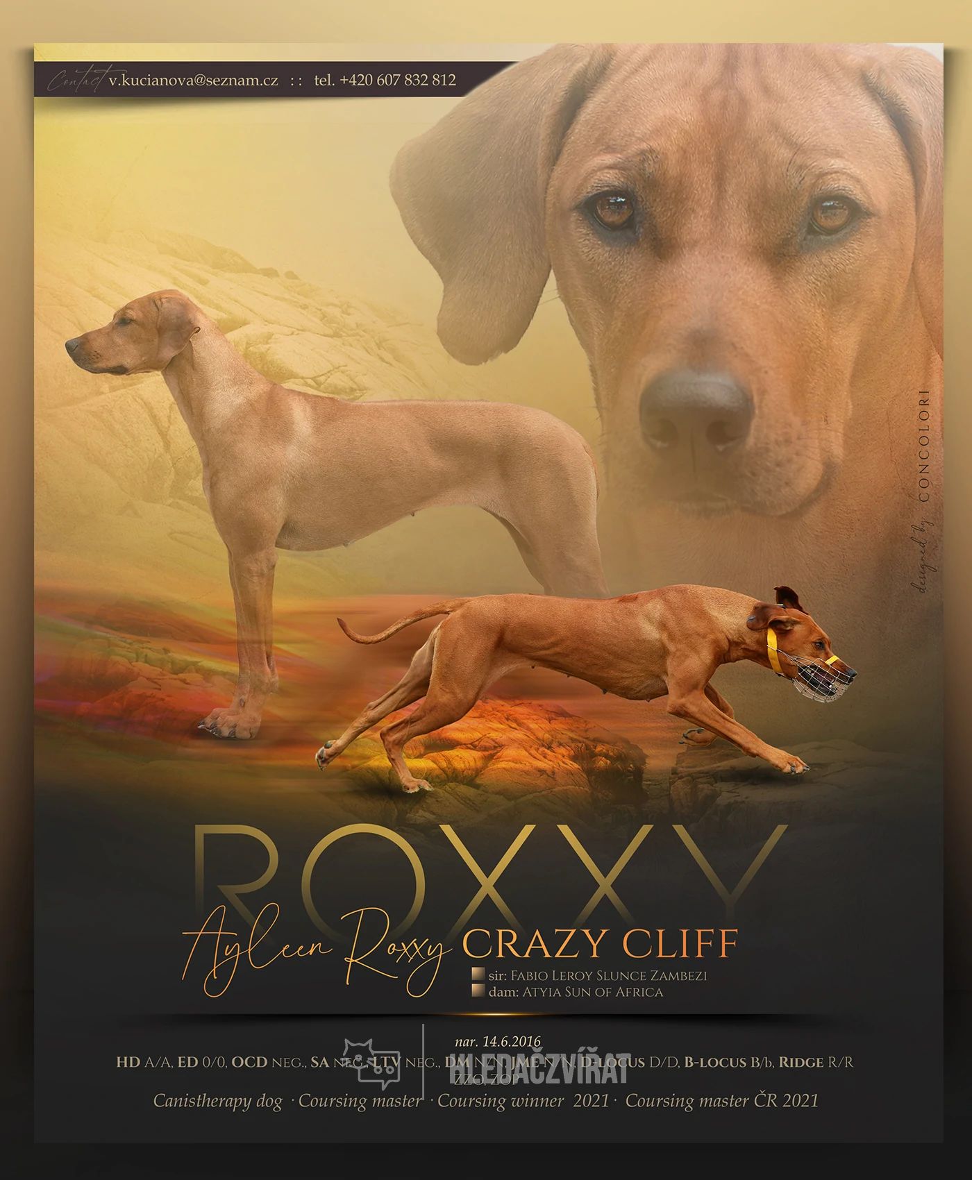 Roxxy se narodila 14.6.2016 v chovatelské stanici Crazy Cliff v Trutnově. Všechna štěňátka byla nádherná a zdravá, celkem se narodilo 8 psů a 5 fen (1 pejsek bez ridge a 1 fenka 3 korunky, ostatní standardní).