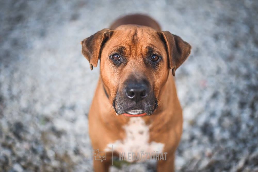 Plemeno: kříženec tosa inu, americký stafordšírský teriér, rhodéský ridgeback (váha 30 kg)