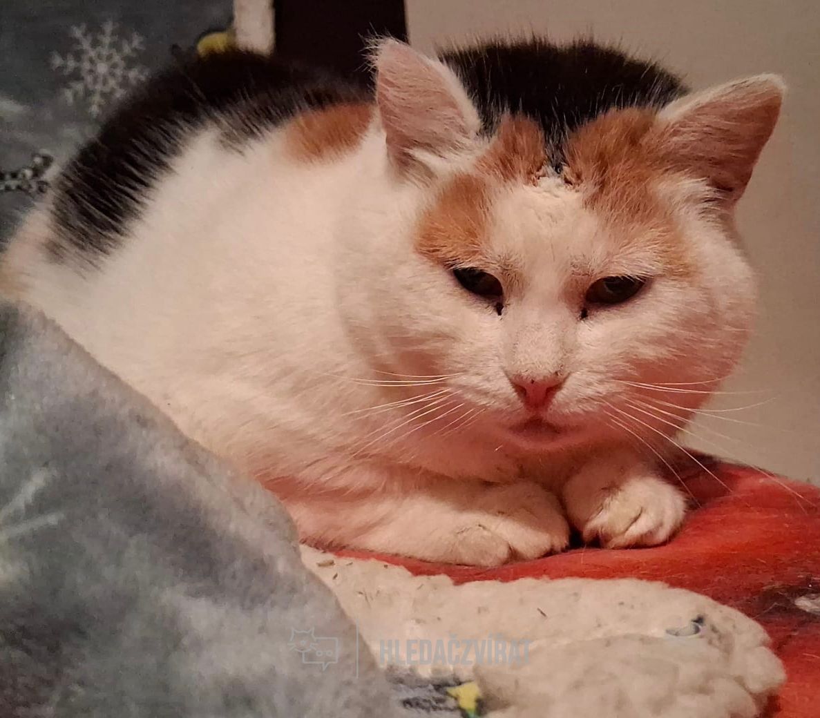 Má lehce zničené boltce uší, nejspíše od mrazu nebo slunce. Hledáme pro ní domov, kde by mohla občas vyrazit na bezpečnou procházku ven, případně pouze uvnitř.
