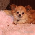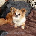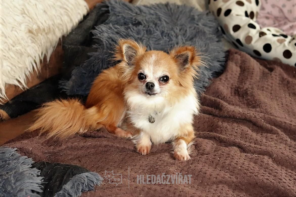 Čivi, která k nám přišla s Norou a Ťapkou, žily všechny tři od podzimu až do března na dvorku a v kotelně po smrti majitele. Čivinka byla jen kostřička potažená kůži, přerostlé drápky,špatné zoubky,2,60kg, tak jsme začali pomaličku rozkrmovat. Jezevčice jí moc jídla nenechali a na dvorku toho k ulovení taky asi moc nebylo.Čivi nemusí kočky, tady z ní mají všechny dost vítr, pěkně je prohání. Jinak je to milá, umazlená čivavka, slyší na přivolání, zvládá chodit na volno. Je jí 7let. Po kastraci a očkování budeme hledat domov.