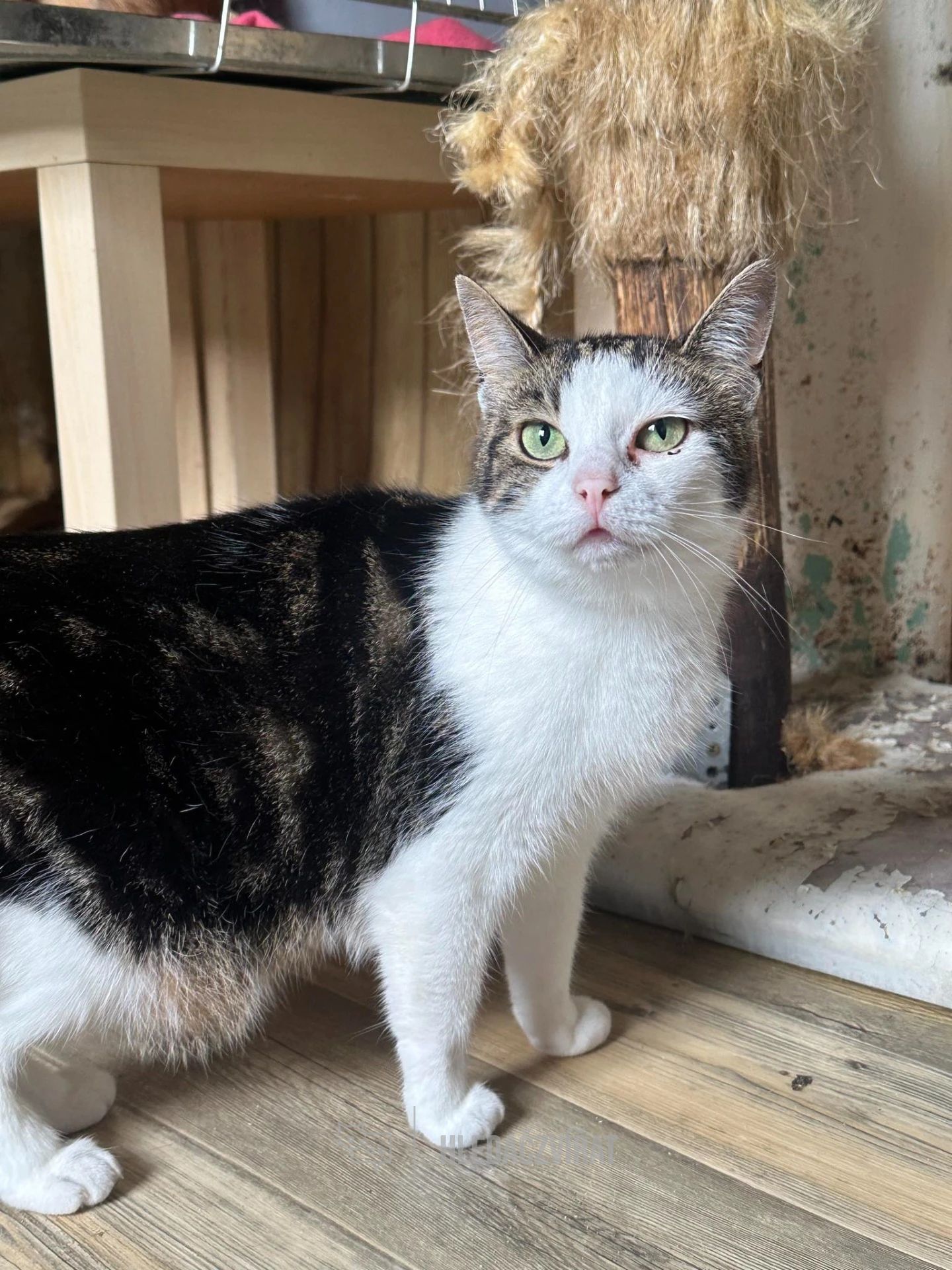 Eliška je mourovatobílá velice plachá mladá kočičí mamina.