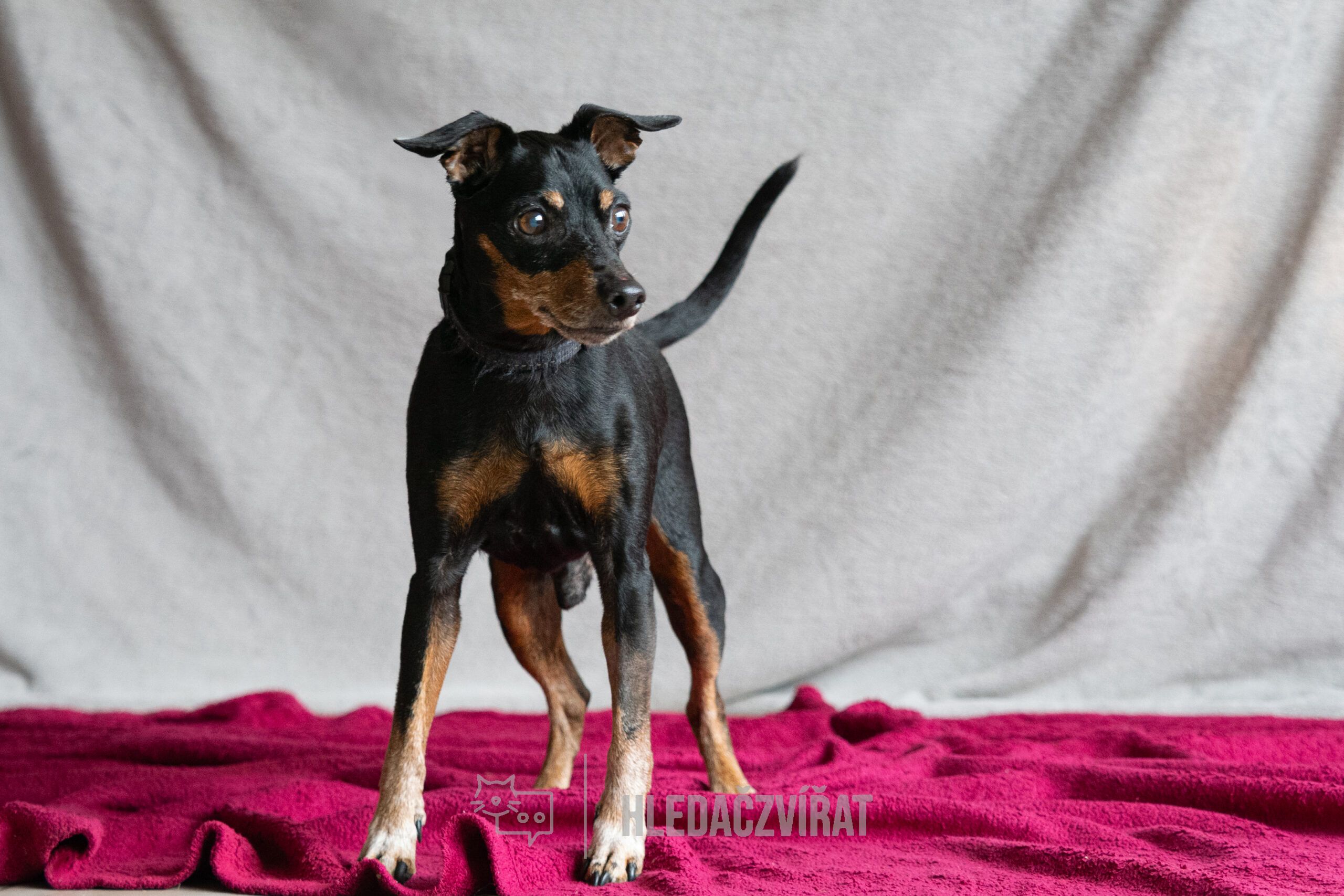 Fred je 14tiletý trpasličí pinč, drobný kluk s váhou pouhých 6 kg.