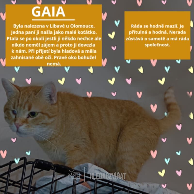 Při přijetí byla hladová a měla zahnisané obě oči.
