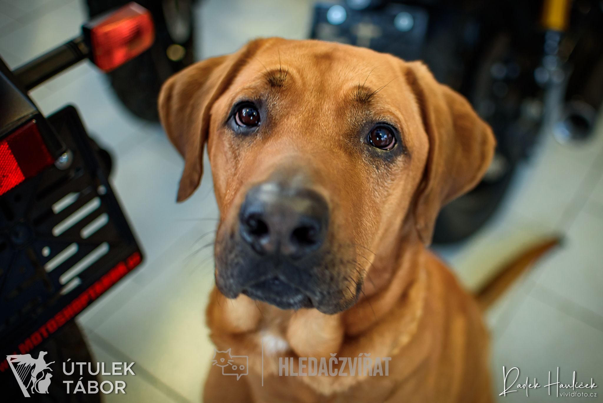 Za dunivé focení patří naše poděkování Radku Havlíčkovi, vividfoto.cz. Poděkování si zaslouží i pan Struparič z www.motoshoptabor.cz, který nám opět půjčil svou prodejnu k focení a nebál se velikosti psa.