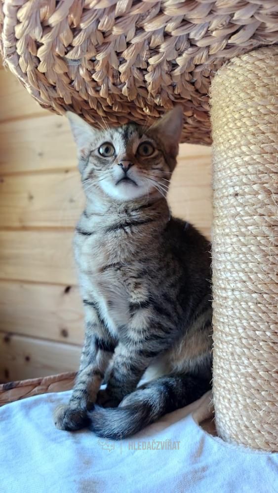 Na krmném místě, kde běží náš kastrační program, se v létě objevila koťata. A jelikož chceme, aby měli lepší život, než jen život plaché kočky na ulici plné nebezpečí a nastrah, koťátka jsme přijali do dočasné péče. Isí je plaché koťátko, a tak jak to bývá u koček samic, dokáže být divoká a bojová. Hračky loví jako o život a pokud se do místnosti dostane moucha, dlouho se tam neohřeje. Tak jako její bratříček Kulíšek, i Isí bude potřebovat člověka, který jí dá čas přizpůsobit se a bude mít trpělivost, než se z ní stane typická mazlivá kočka. Uvítala by společnost koťátka nebo kočky. Nebojí se hlasitých zvuků a nevadil by jí asi ani klidnější pejsek. Je to ještě pořád malé a aktivní koťátko a tak by měl mít kočičího společníka, který ho provede životem. Domov hledá ideálně v interiéru se zabezpečenými okny nebo zabezpečenou zahradou.