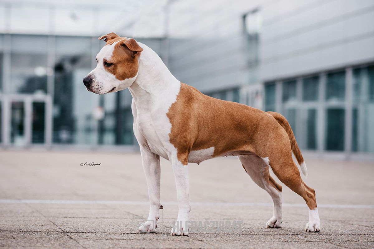 Americký stafordširský teriér je statný, podsaditý pes v sobě spojuje sílu buldoka a temperament a bystrost teriérů. Má mohutnou hlavu na silném krku, hluboký hrudník a statné, robustní tělo kryté silnou kůží.