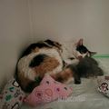 28.4.2025 Dnes jsme mysleli, že máme dovezený odchyt na kastraci a kočička porodila. Protože se druhé mimi zaseklo, museli jsme udělat císařský řez. Takže první mimi do podprdy jen na chvíli (36,5stupnu je málo) a sušit sourozence. Vypadají všichni dobře a maminka zřejmě nebude zabiják, teda alespoň dnes ne. Je to asi šedá holčička a šedobílý a černobílý kluk.