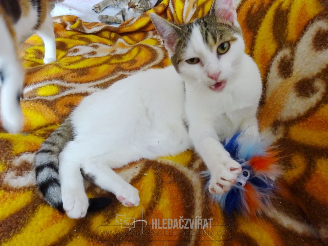 25.9.2022 jsme přijali pět opuštěných koťátek z Holohlav. Objevila se na zahradě domku, kde nikdo nebydlel, na mámu tam marně tři dny čekala a naříkala tam. Všechna koťátka jsou mazlivá zlatíčka, někdy až moc :-).