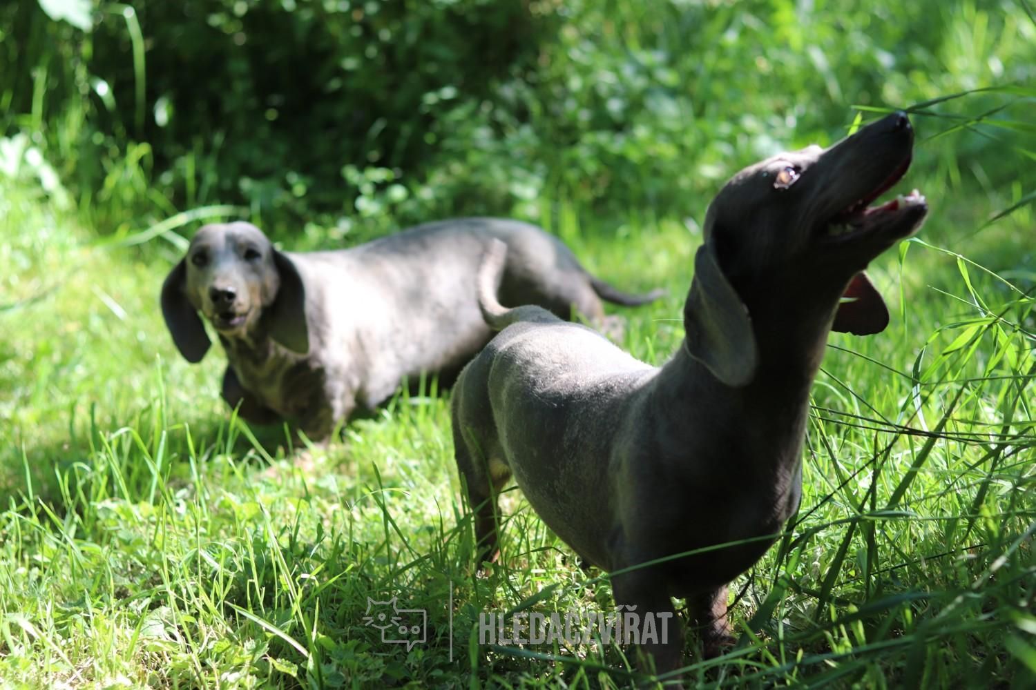 Dorotka a Lucinka jsou staré cca 4 - 5 let. Jsou to jezevčice každým coulem. Váží 7 a 8 kg a po všech veterinárních úkonech mohou klidně domů. Ideálně spolu, protože jsou na sebe zvyklé.