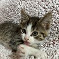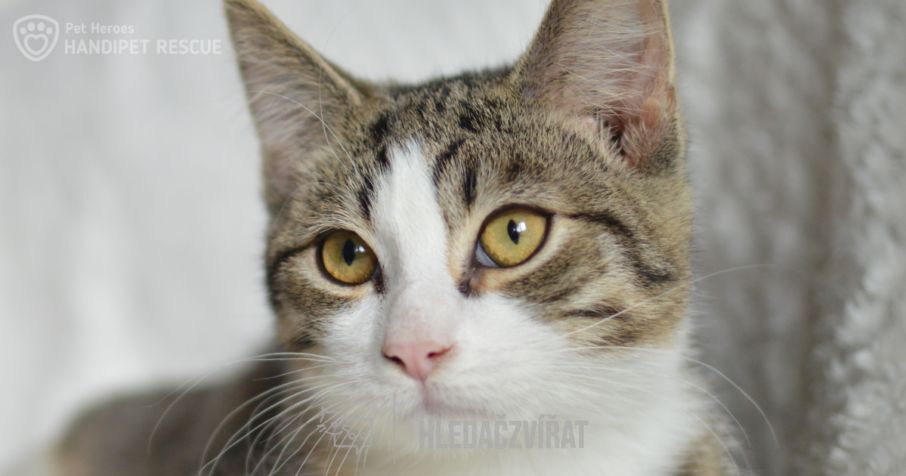 Dostal se nám jako malinkaté koťátko, kterému nebylo víc než pár týdnů. Obě nohy tahal za sebou a navíc potřeboval manuálně vymačkávat močový měchýř.