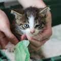 - Koťátko Lumity při příjmu nevidělo na jedno oko a nohy tahalo za sebou