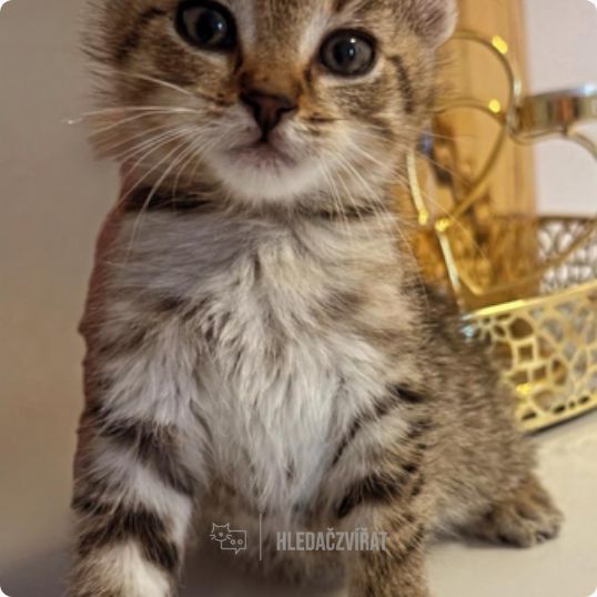 Jedno z koťátek nalezených v lese při Slavkove u Brna. Zatím v léčení na Giardie. Jinak v pořádku. V dočasné péči.