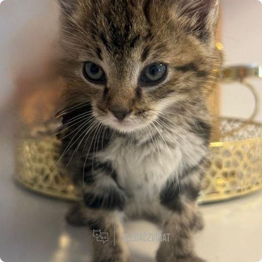Jedno z koťátek nalezených v lese při Slavkove u Brna. Zatím v léčení na Giardie. Jinak v pořádku, v dočasné péči.