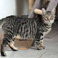 je asi 1 rok stará kočička. Kočka domácí. Evidentně nesocializovaná od kotěte, což je na ní znát. V útulku je již několik měsíců, a je stále trochu plachá. Když jí však již začnete hladit, je blahem bez sebe. Při příchodu k nám se nedala pohladit vůbec, natož vzít do ruky. Udělala veliký pokrok.