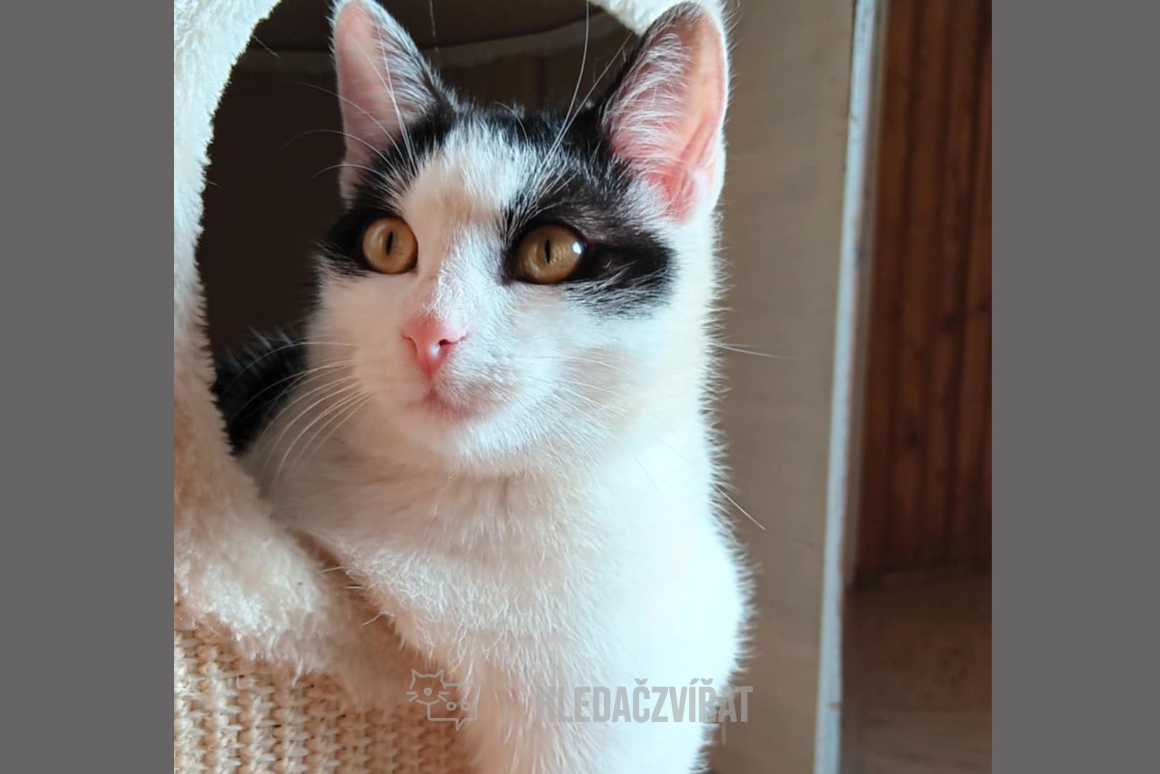 Černobílý kocourek Ogy má 8 měsíců.