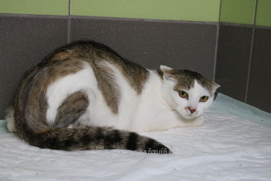 Kočička se zotavila a dnes běhá jako fík! Při kastraci se zjistilo, že byla opět březí, ale její tělo už nedokázalo unést další těhotenství. Porody by pro ni byly velmi rizikové, vzhledem k poškozené pánvi a zdravotnímu stavu.