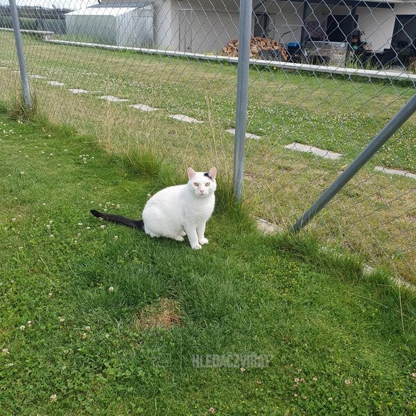 Bílý kocourek s černými znaky, asi dvouletý, nalezený v chatové oblasti Březské-Nihov. Páťa je zdravý a připravený odejít do nového milujícího domova.