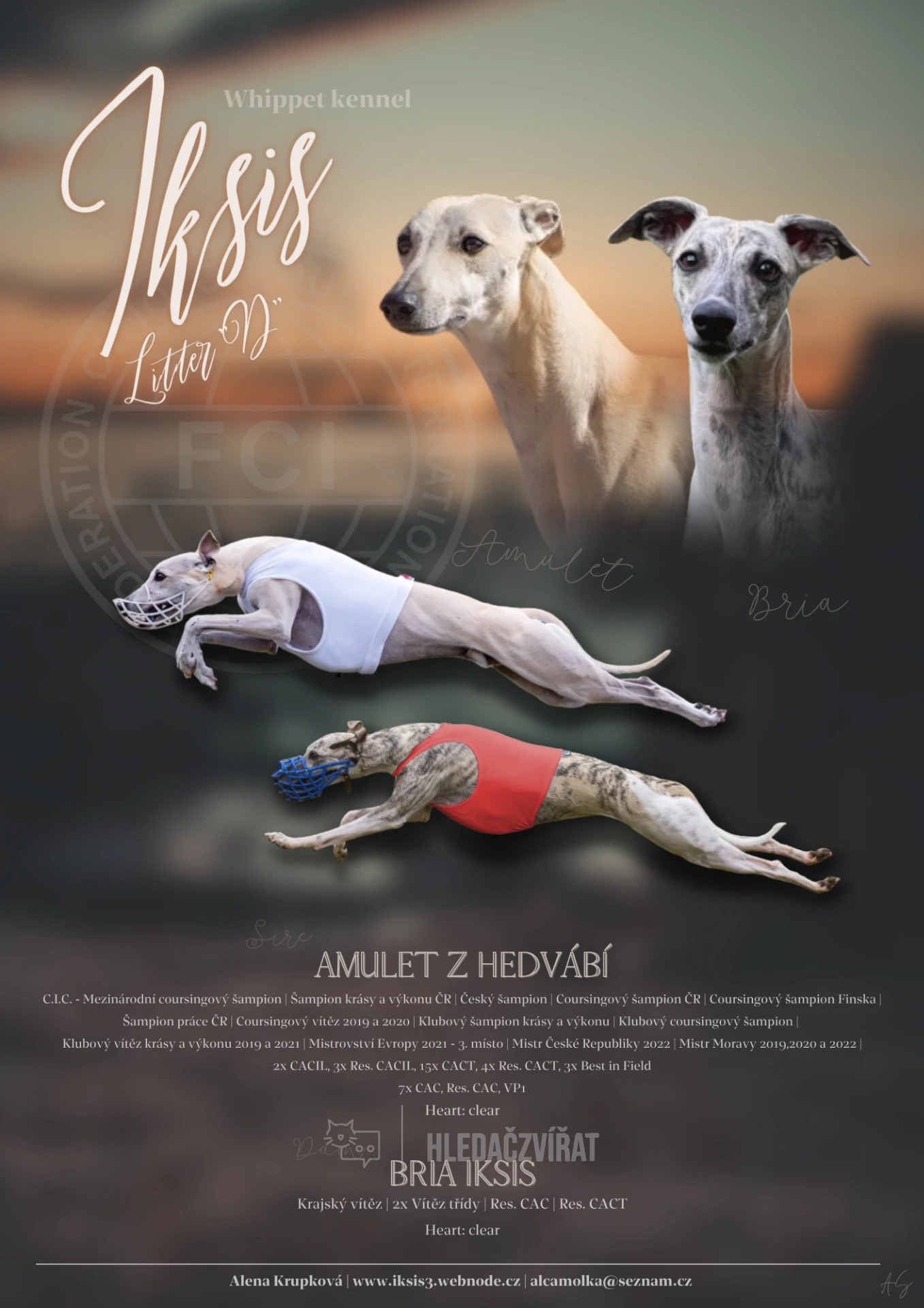Přijímáme rezervace na štěňata plemene Whippet s průkazem původu (PP). Štěňátka budou vhodná pro výstavy i jako milující společníci. Dbáme na zdravý chov, skvělý exteriér a vyrovnanou povahu.