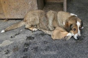 Fena křížence velké velikosti, věk 11 let. Je údajně velmi agresivní, i na členy své rodiny.