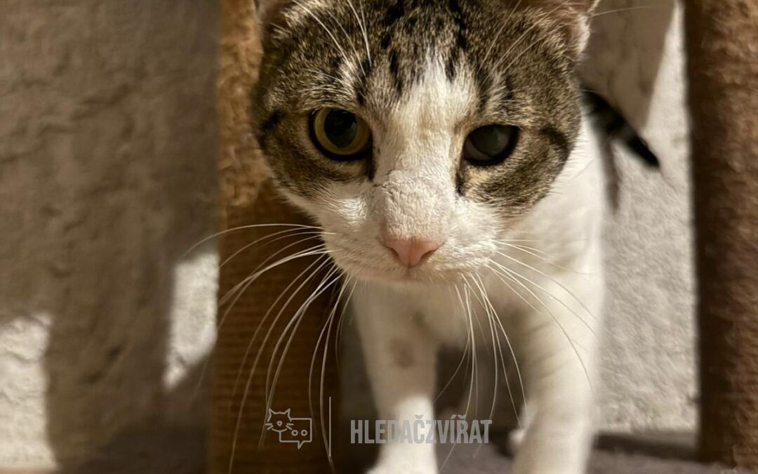 Má výrazný, nezaměnitelný vzhled díky jednomu zakalenému oku – pravděpodobně následku starého zranění. Chceme uklidnit potenciální adoptující: náš veterinář potvrdil, že na toto oko není slepý, nemá žádné zdravotní potíže související se zraněním a nevyžaduje žádnou léčbu.