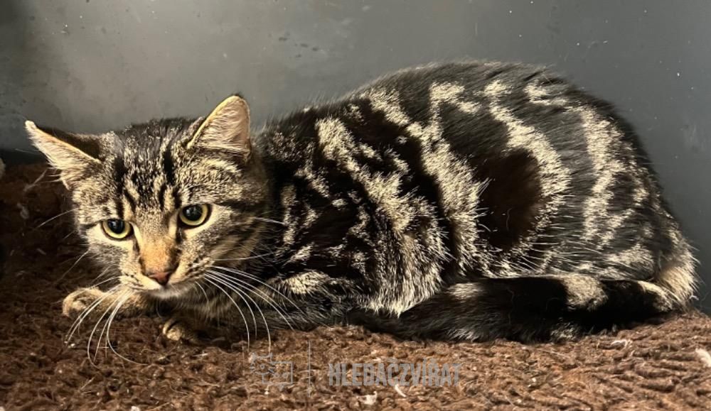 Je kočka domácí, starý asi 8 měsíců. Tento kočičí fešák je malý vzrůstem, avšak krásného mramorovaného zbarvení. Kotě, které bylo nalezené, divoké, neohlazené. Nyní se snaží již komunikovat s lidmi, jen mu to trochu trvá déle. U divokých kočiček je takové chování naprosto normální. Trpělivý, laskavý člověk, snadno naváže na důvěru tohoto opravdu moc hezkého kocourka.